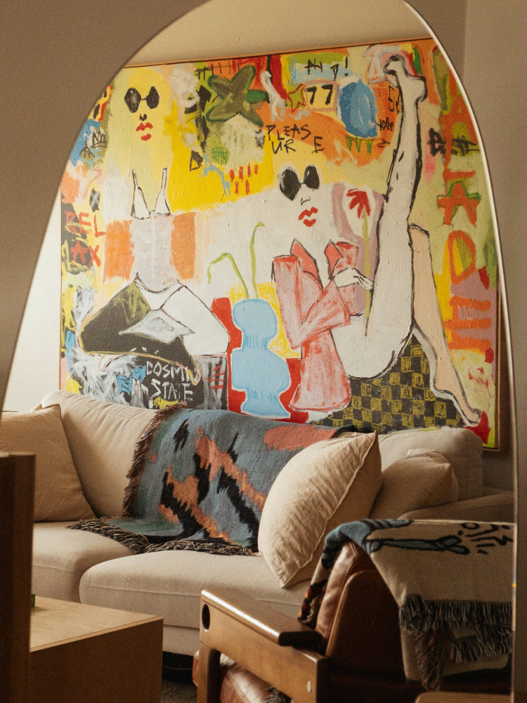 She creates original artworks in her signature style. Each piece is developed from the ground up, shaped by colour, form, and mood, and designed to live naturally within the client’s space. No two commissions are the same.